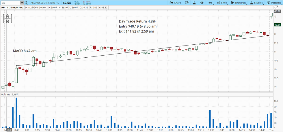 MomentumTradingHQ.com Featured Stock for the Week of 1/26/26 - 1/30/26: Alliance Bernstein Holding (AB) Day Trade Return of 4.3%